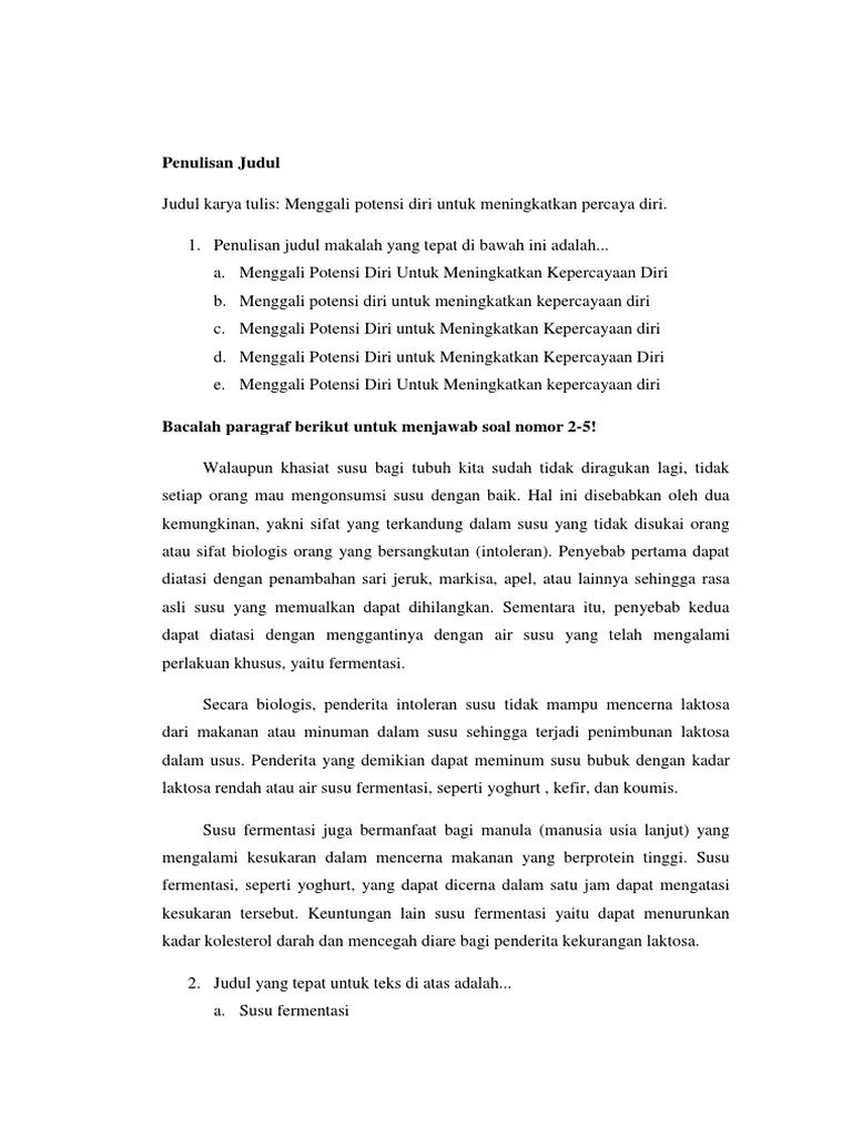 Penulisan judul makalah yang tepat adalah… Pengendalian hama belalang dan ulat pada tanaman dengan biopestisida. Setiap karya tulis tentunya mempunyai kaidah tersendiri seperti . Menggali potesi diri untuk meningkatkan kepercayaan diri. Penulisan judul karya tulis yang tepat adalah …. Daftar pustaka adalah suatu susunan tulisan di akhir sebuah karya ilmiah yang isinya berupa nama penulis, judul tulisan, penerbit, identitas penerbit, . Bengawan ini admin bakal membicarakan tulisan tentang penulisan judul karya ilmiah yang tepat. Manfaat jahe untuk menguatkan sistem kekebalan tubuh. Udara bersih dan sehat dambaan . 16032017 pada dasarnya hal yang akan kita bahas adalah bagaimana cara menentukan topik tema dan judul pada suatu karya tulis ilmiah. Menulis setiap awal kata dengan huruf kapital, terutama huruf pada kata paling depan, . Penulisan judul karya tulis yang tepat adalah … a. Huruf miring digunakan untuk menulis judul karya yang lebih besar (misalnya judul buku), sedangkan tanda petik digunakan untuk menulis .